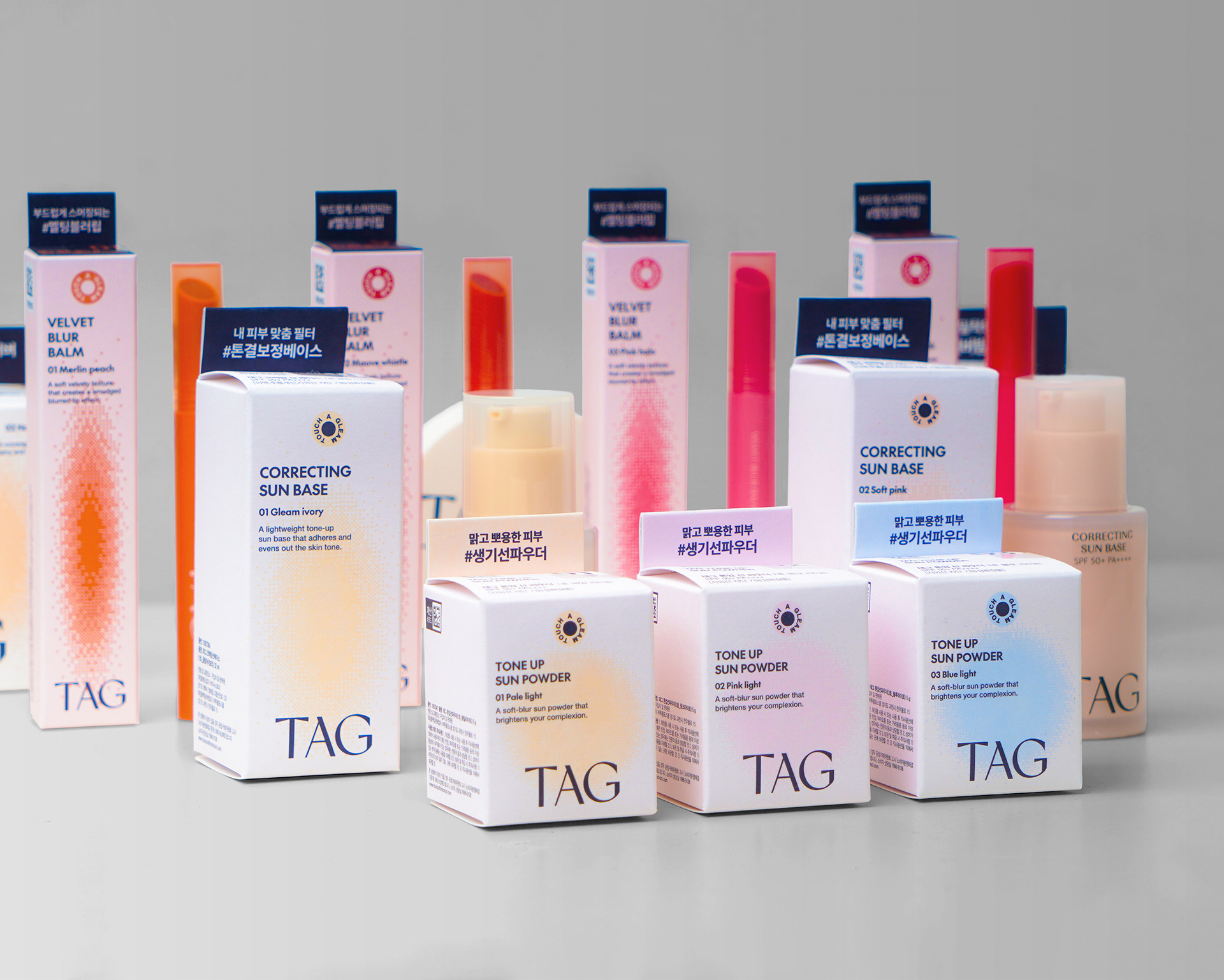 Co-developed by Too Cool for School (@toocoolforschool_official) and Daiso (@daisolife), TAG embraces the tagline “Touch A Gleam”. The brand expresses the harmony of dual beauty through base makeup looks inspired by the interplay of light and shadow.